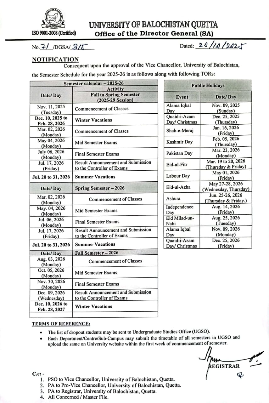 | 6. | College of Nursing (QIMS) Quetta Cantt: | BSN |