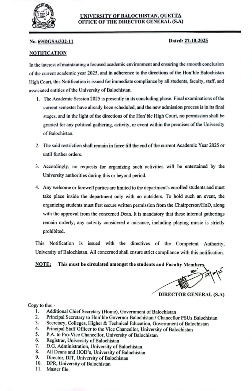 | 8. | National Institute of Higher Education, Quetta | LL.B |