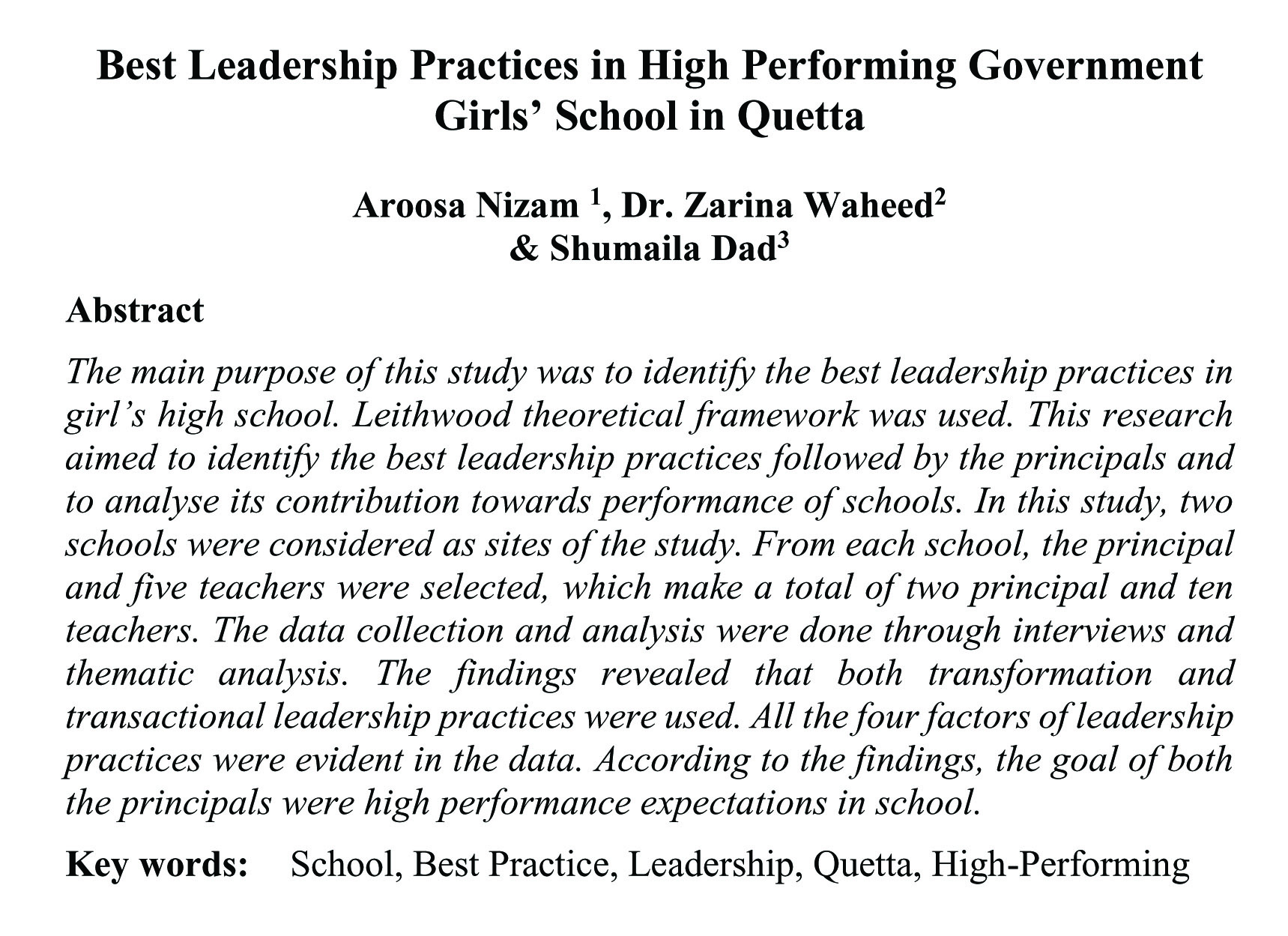 Best Leadership Practices in High Performing Government Girls' School in Quetta(abstract)