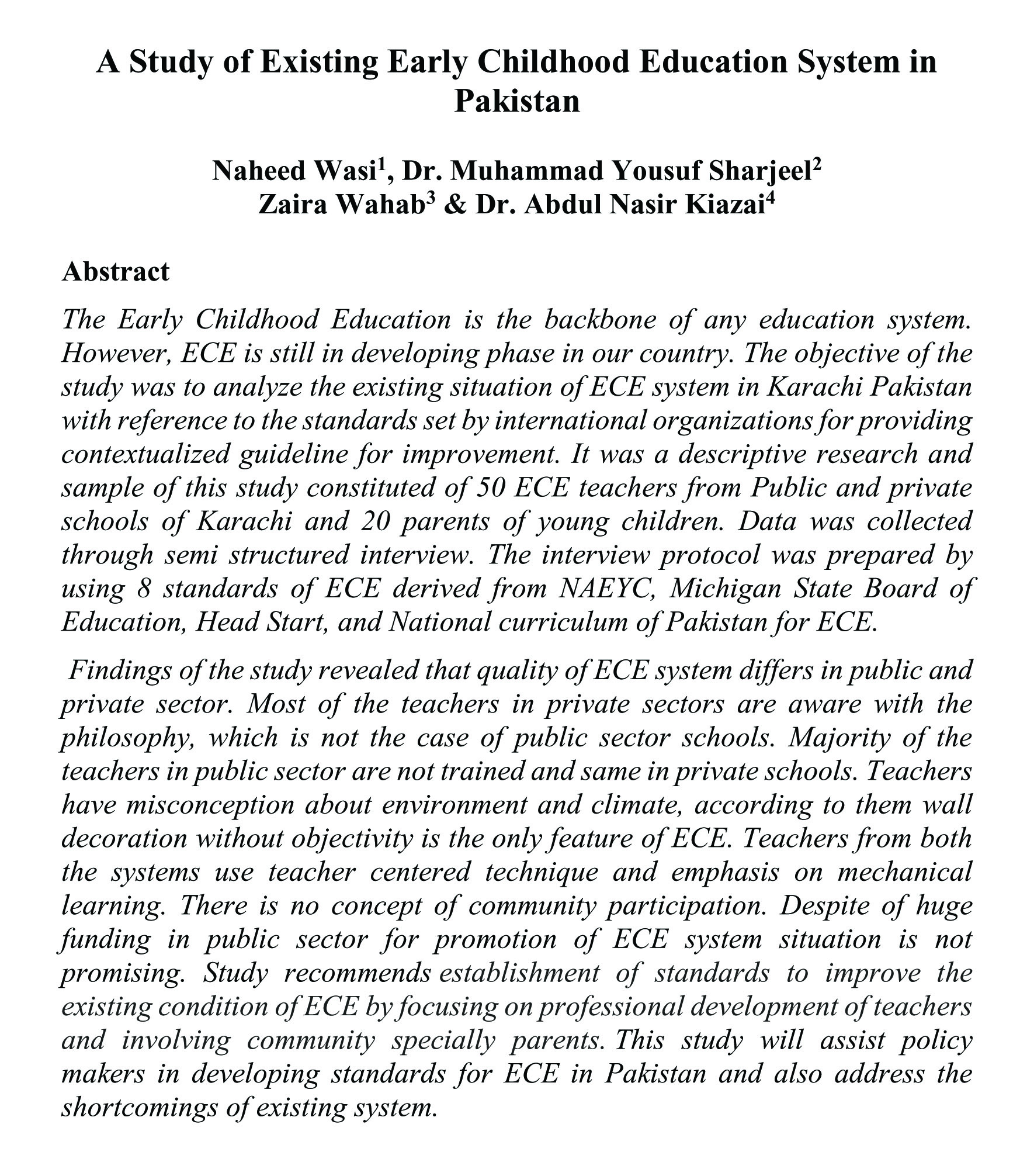 A Study of Existing Early Childhood Education System in Pakistan (abstract)