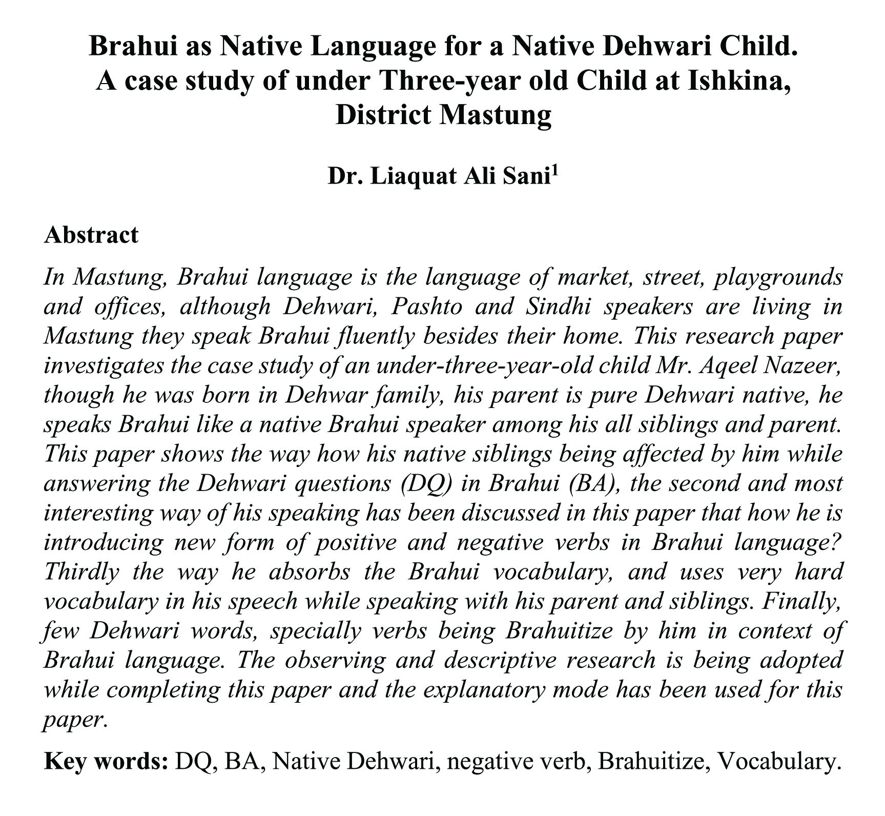 Language for a Native Dehwari Child. A case study of under Three-year old Child