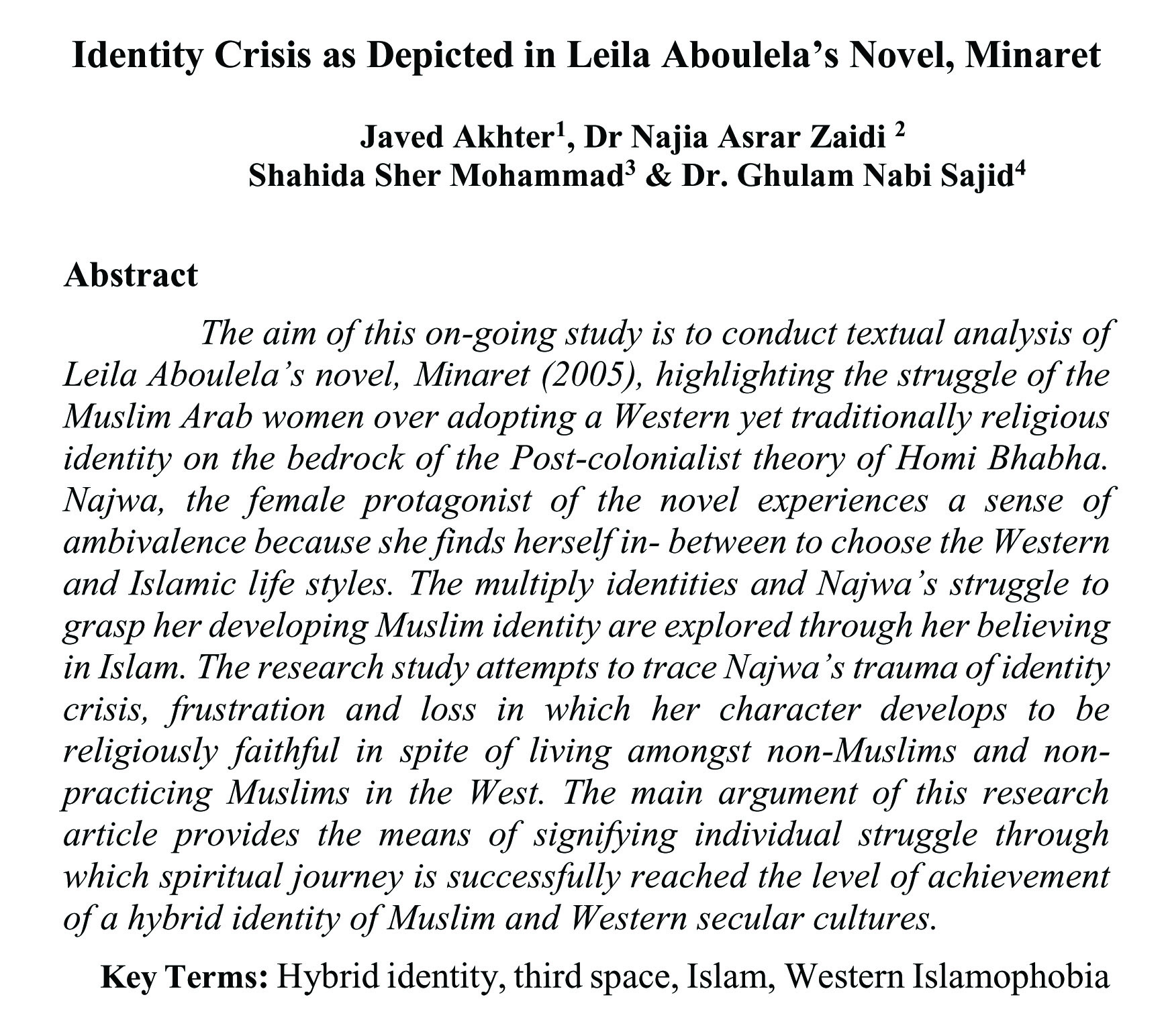 Identity Crisis as Depicted in Leila Aboulela's Novel, Minaret (abstract)