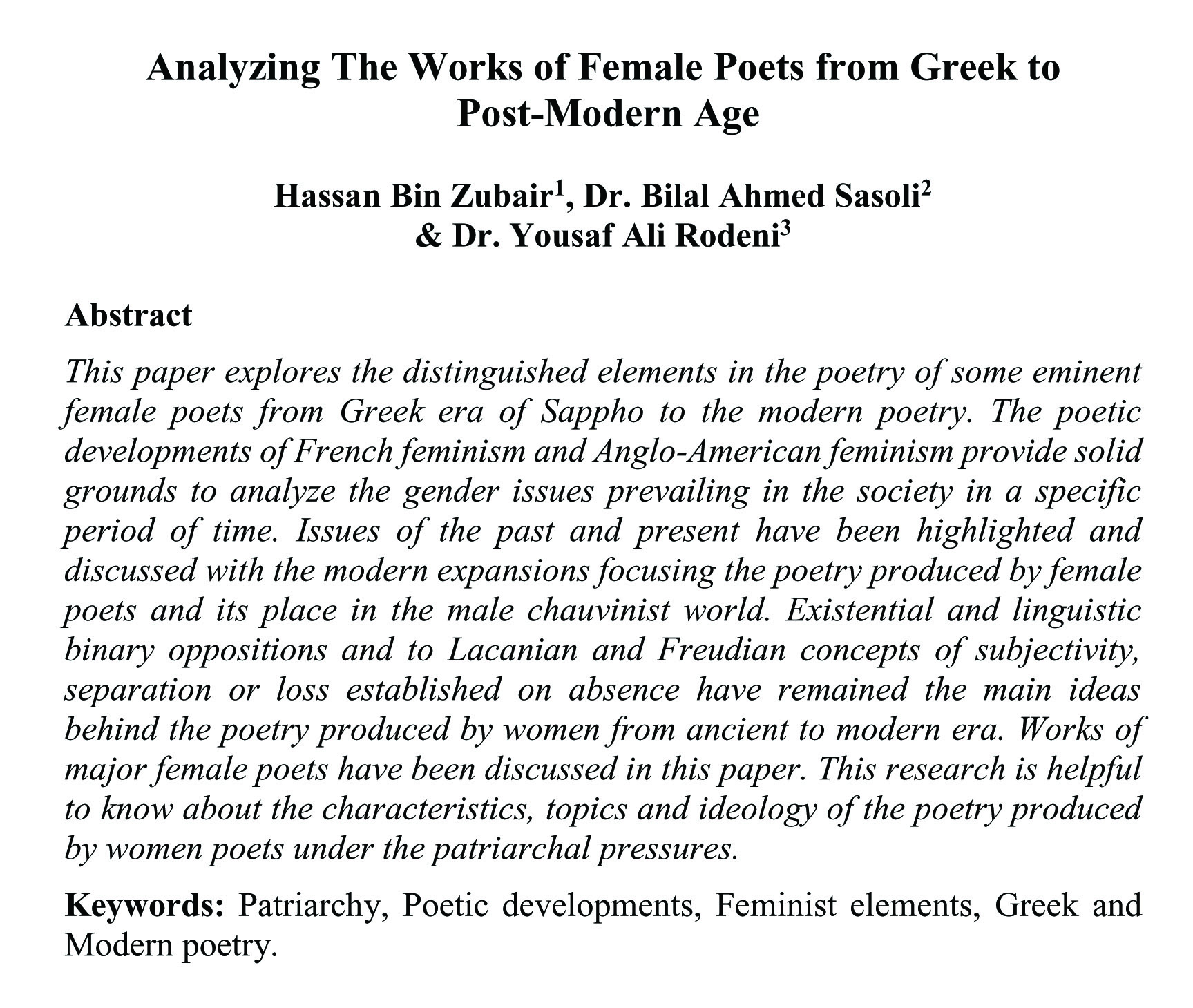 Analyzing The Works of Female Poets from Greek to Post-Modern Age (abstract)