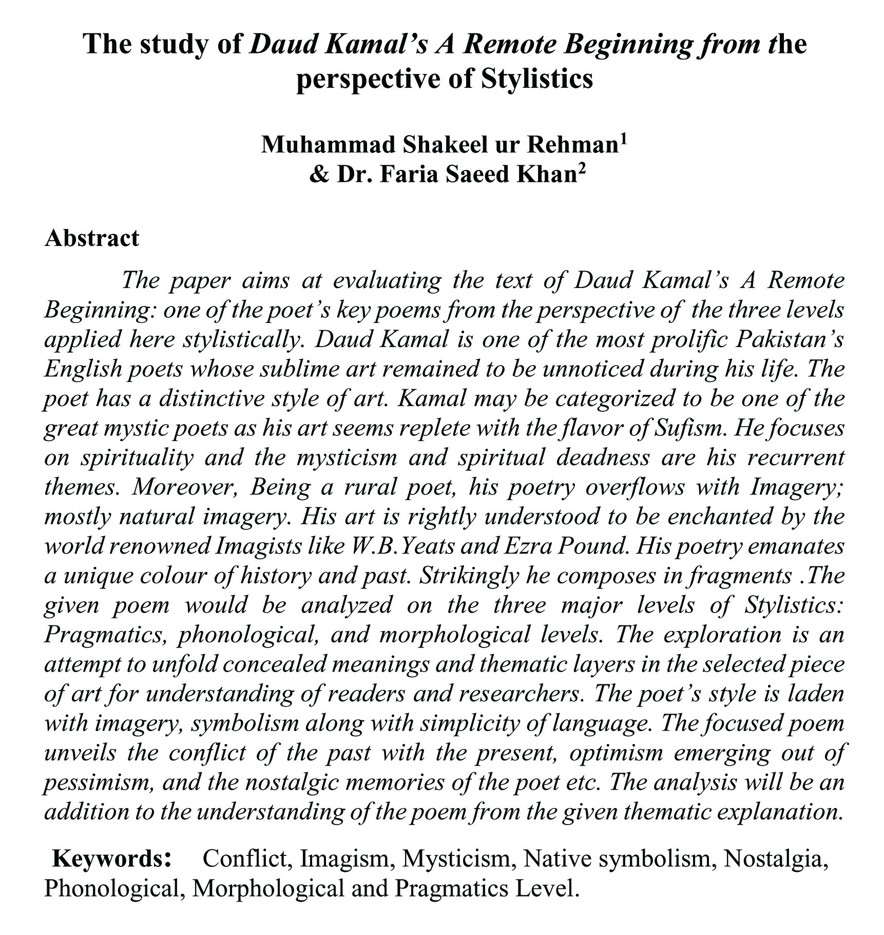 The study of Daud Kamal's A Remote Beginning from the perspective of Stylistics (abstract)