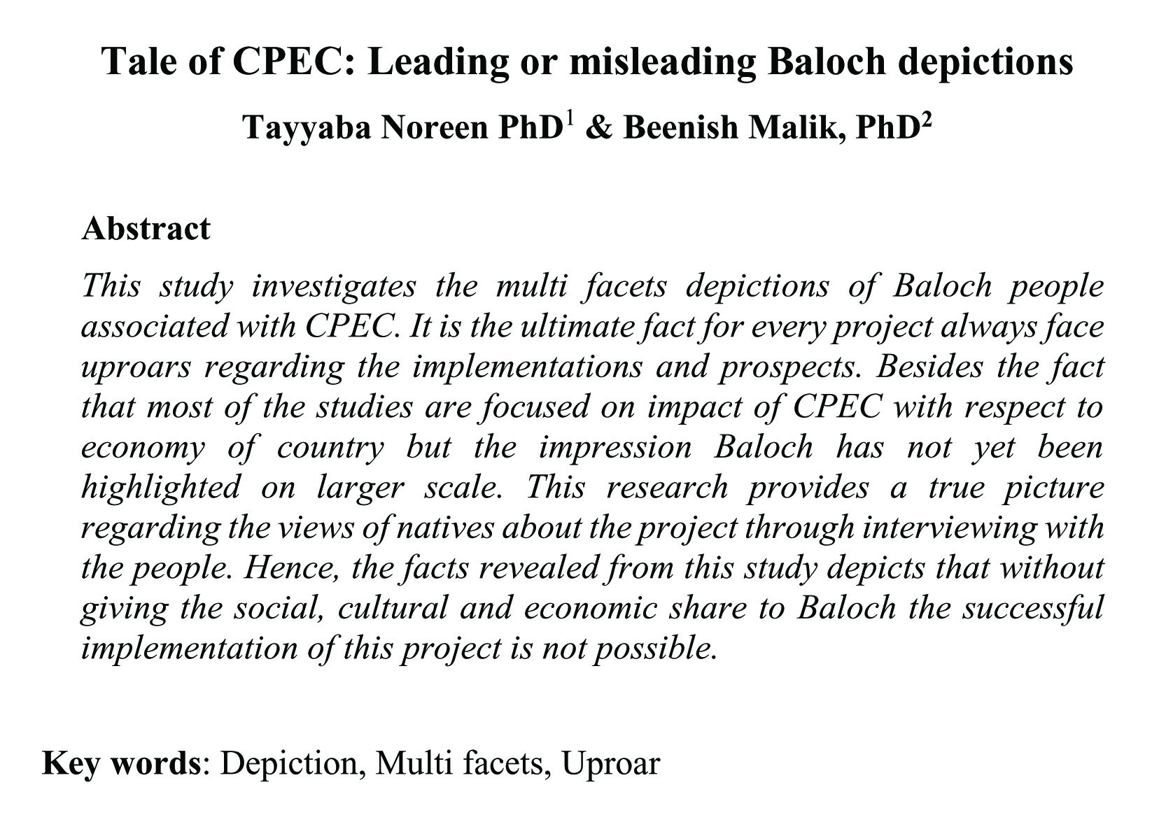 Tale of CPEC: Leading or misleading Baloch depictions (abstract)