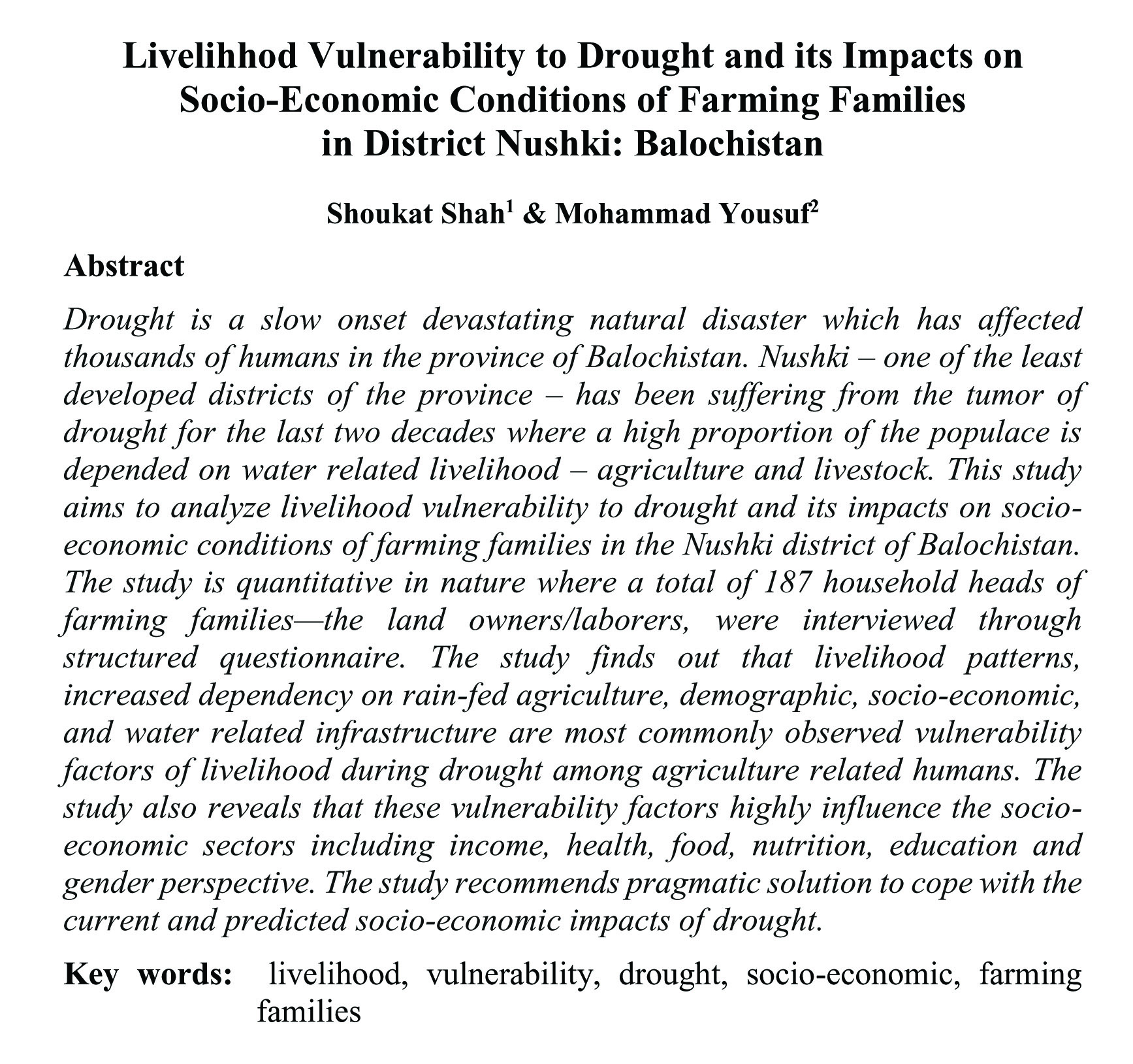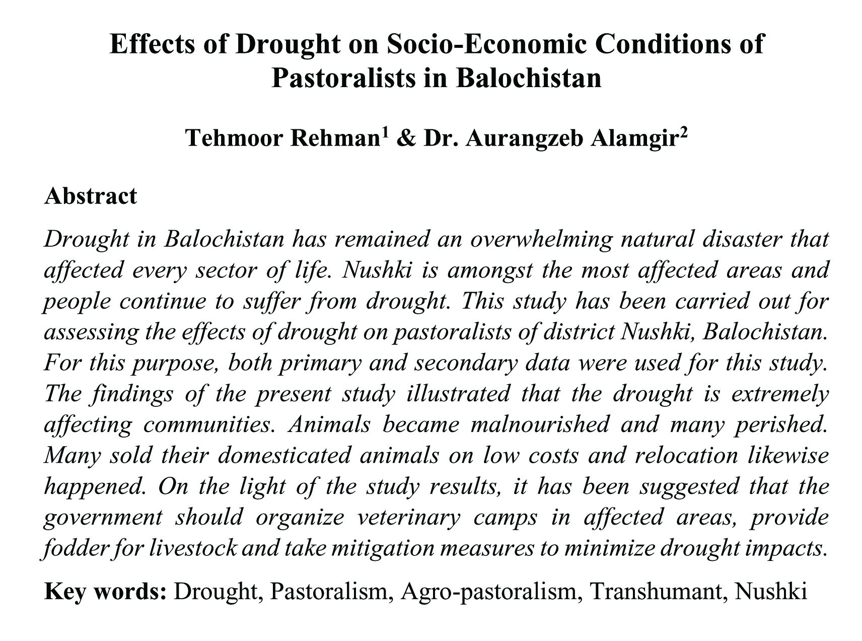 Effects of Drought on Socio-Economic Conditions of Pastoralists in Balochistan (abstract)