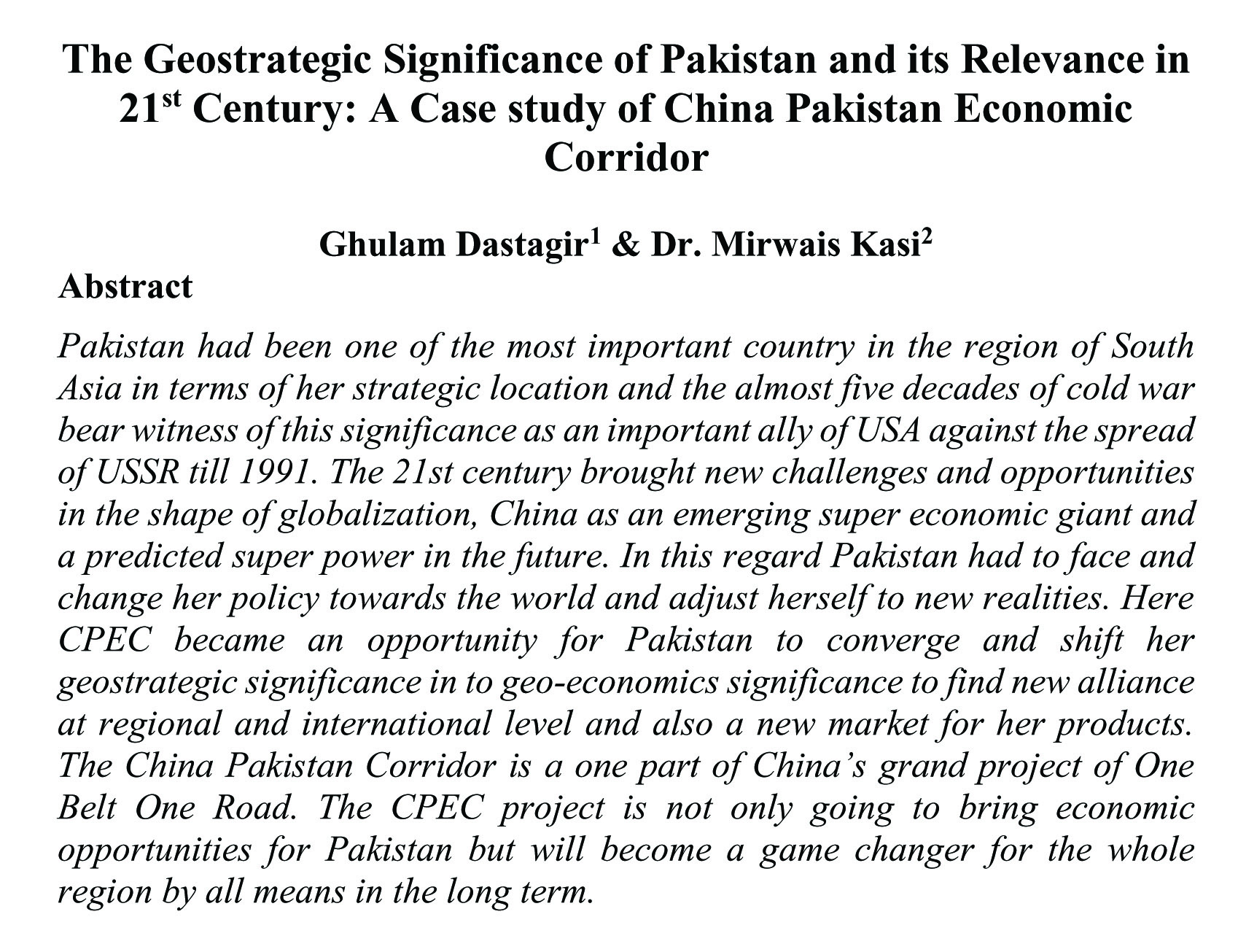 The Geostrategic Significance of Pakistan and its Relevance in 21st Century: A