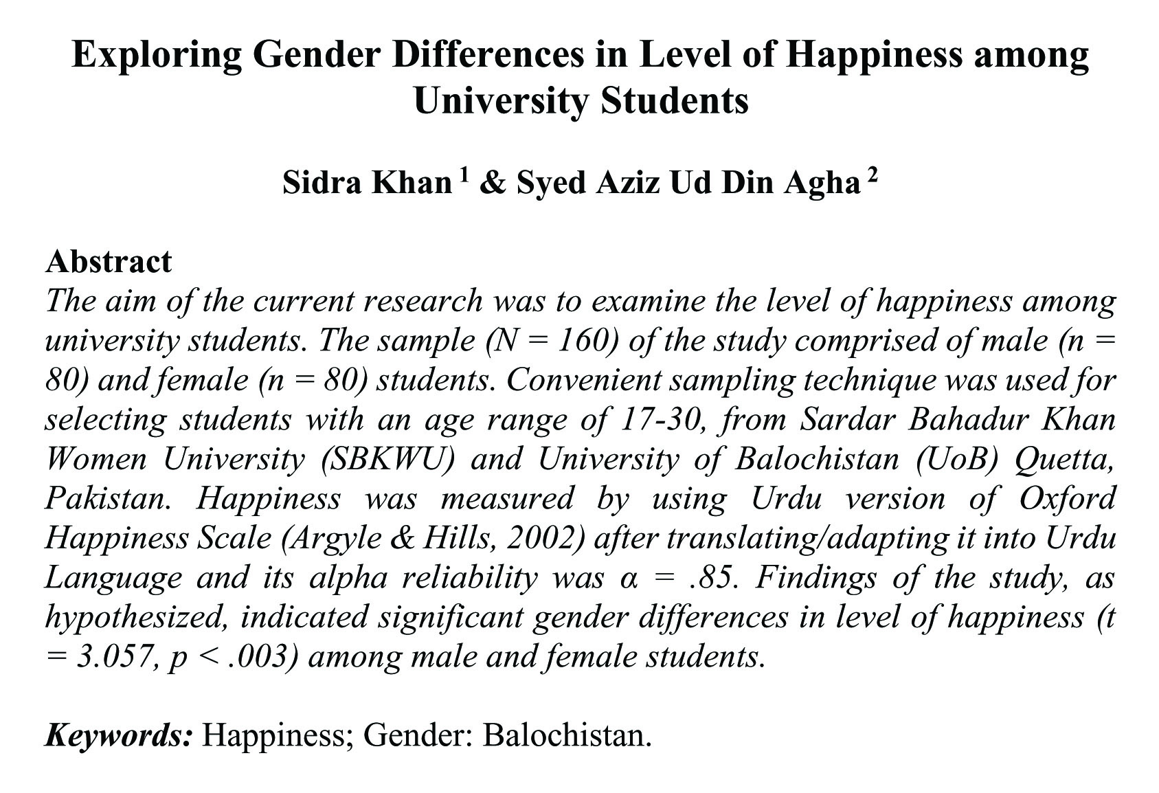 Exploring Gender Differences in Level of Happiness among University Students (abstract)