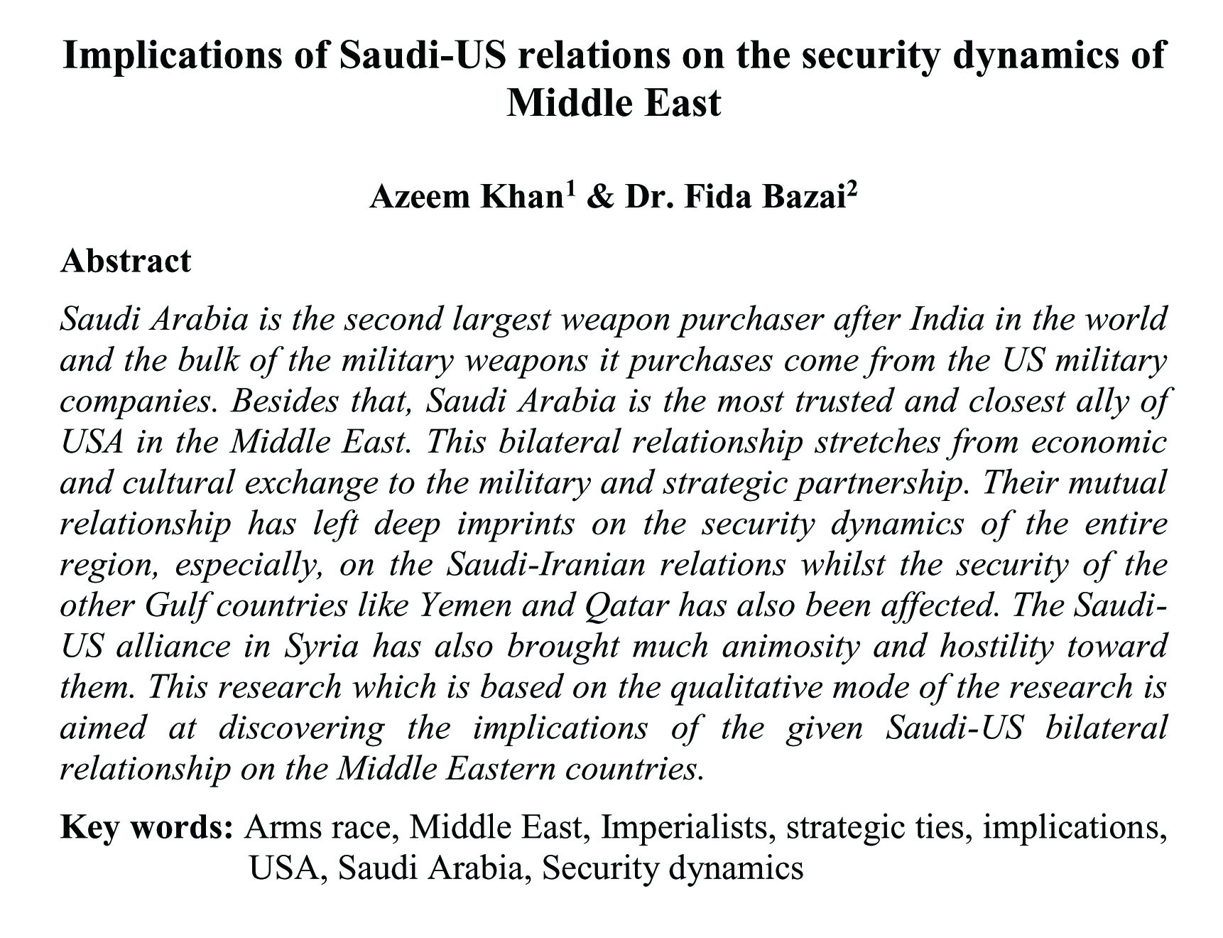 Implications of Saudi-US relations on the security dynamics of Middle East (abstract)