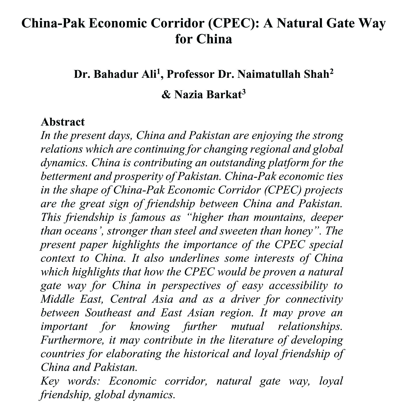 China-Pak Economic Corridor (CPEC): A Natural Gate Way for China (abstract)