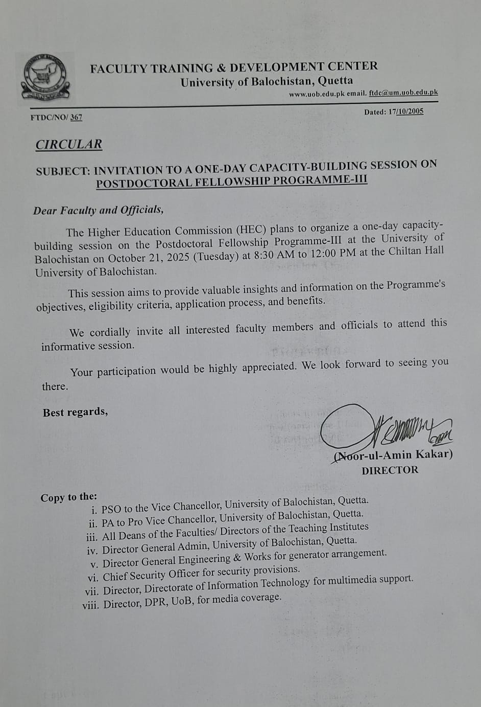 | 10 Days Professional Development Training for Upgraded Administrative staff University of Balochistan |