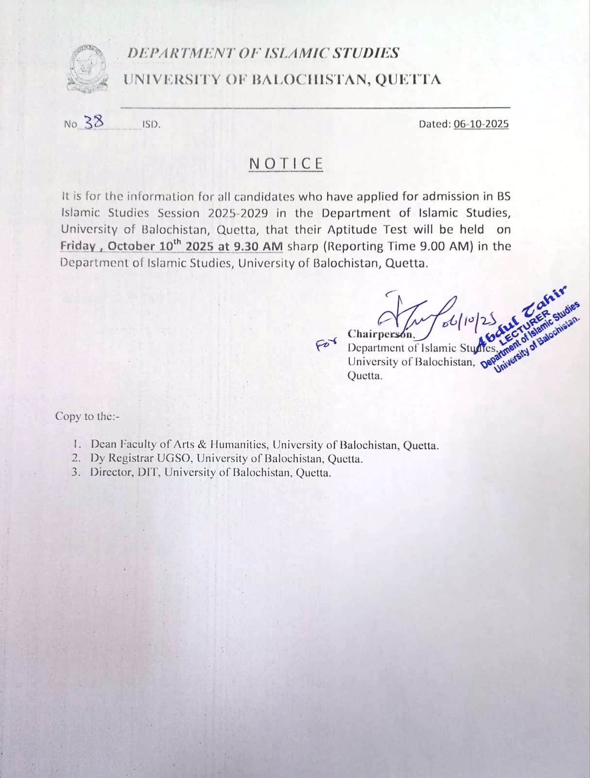 π’ Test Schedule of Admissions in BS-Fall 2025 β