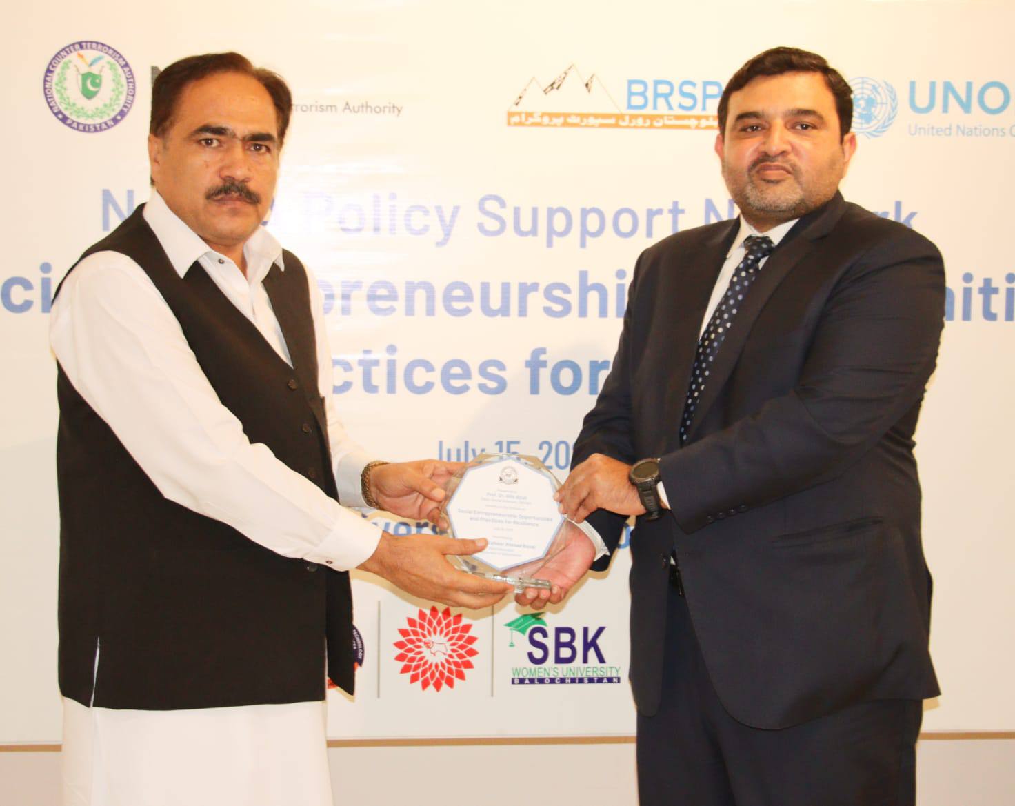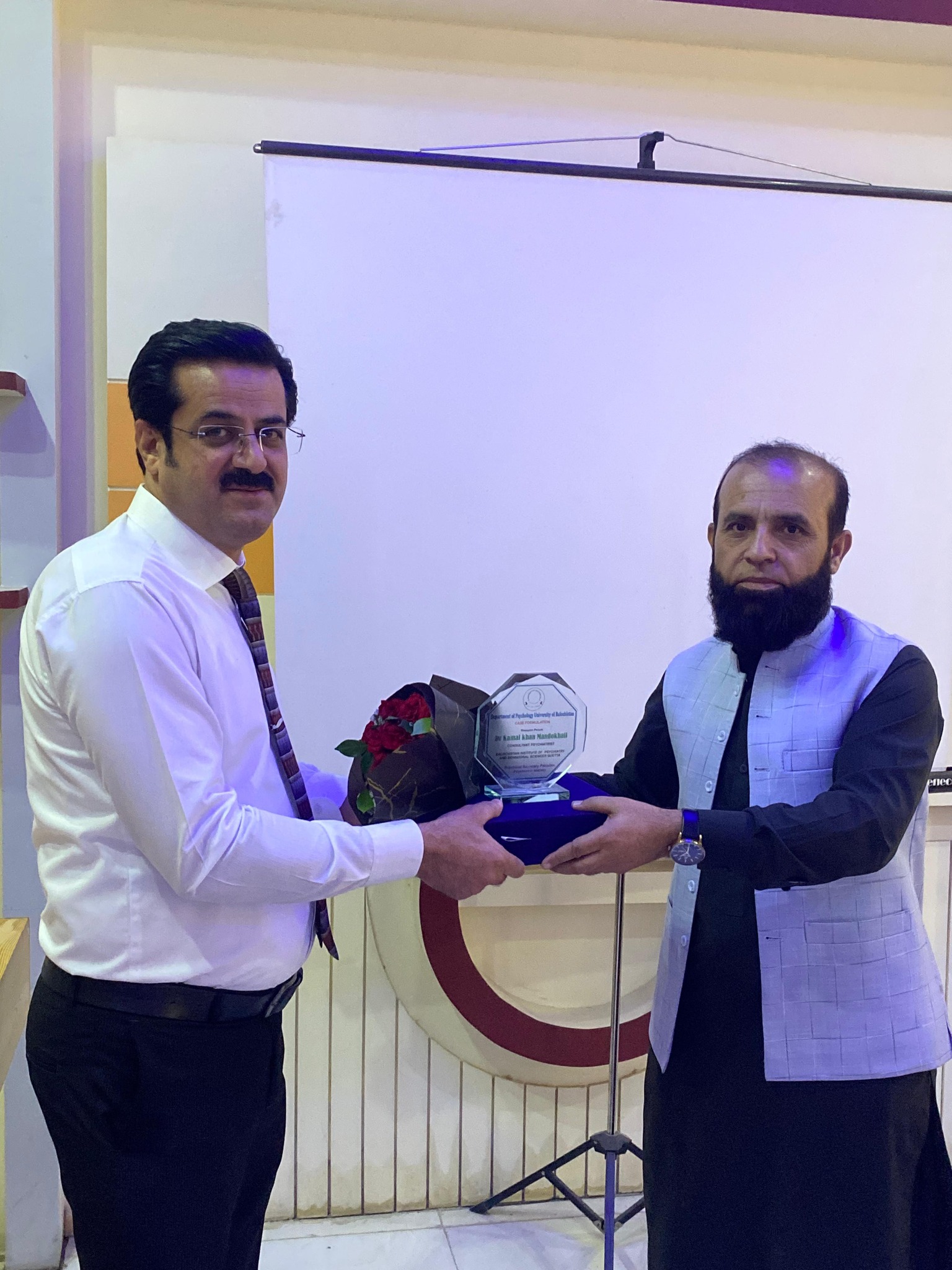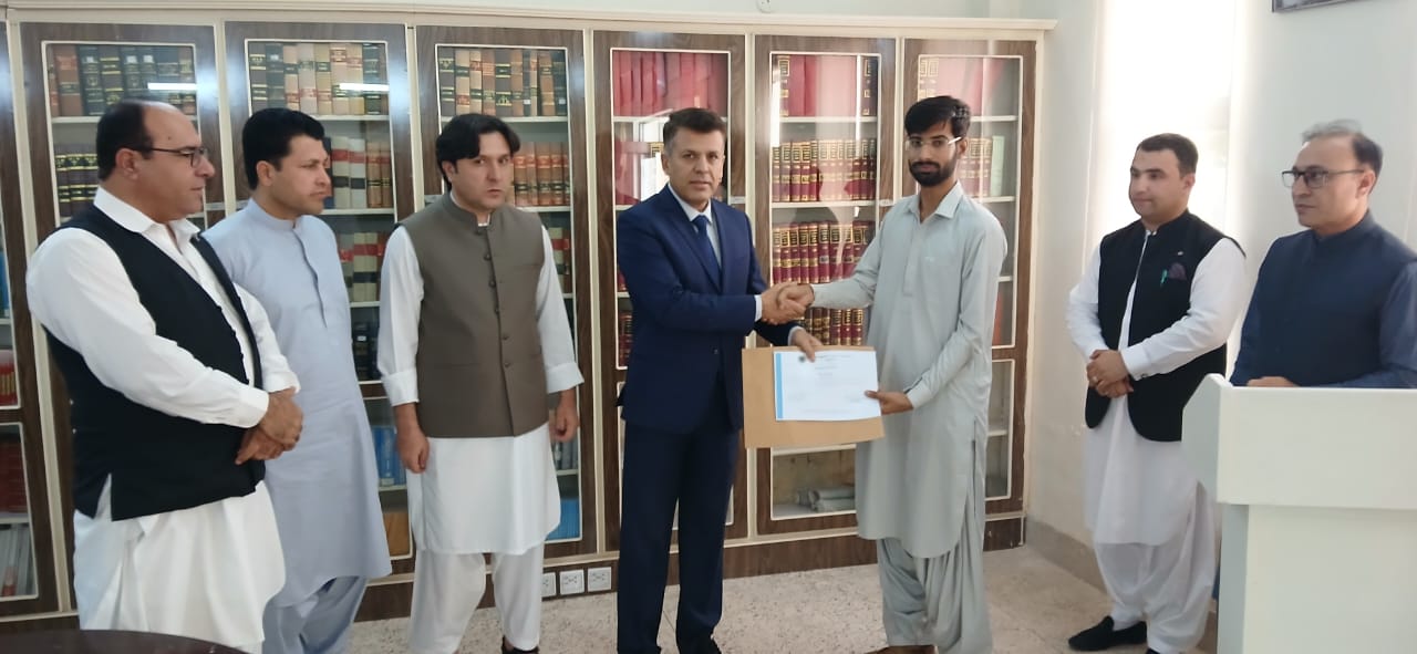 University of Balochistan Vice Chancellor Prof. Dr. Zahoor Ahmed Bazai awarded a shield of appreciation to Aamir Khan, a student of the university, for his outstanding achievement in mountaineering.