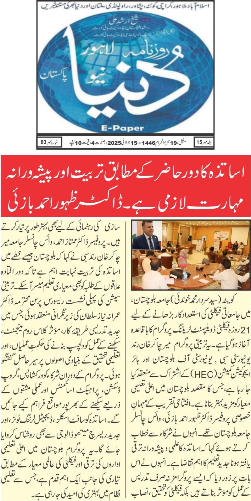 July 14, 2025 – Department of Public Relations, University of Balochistan