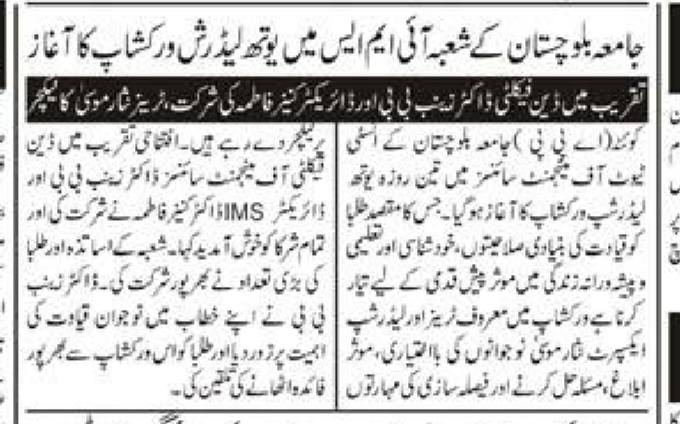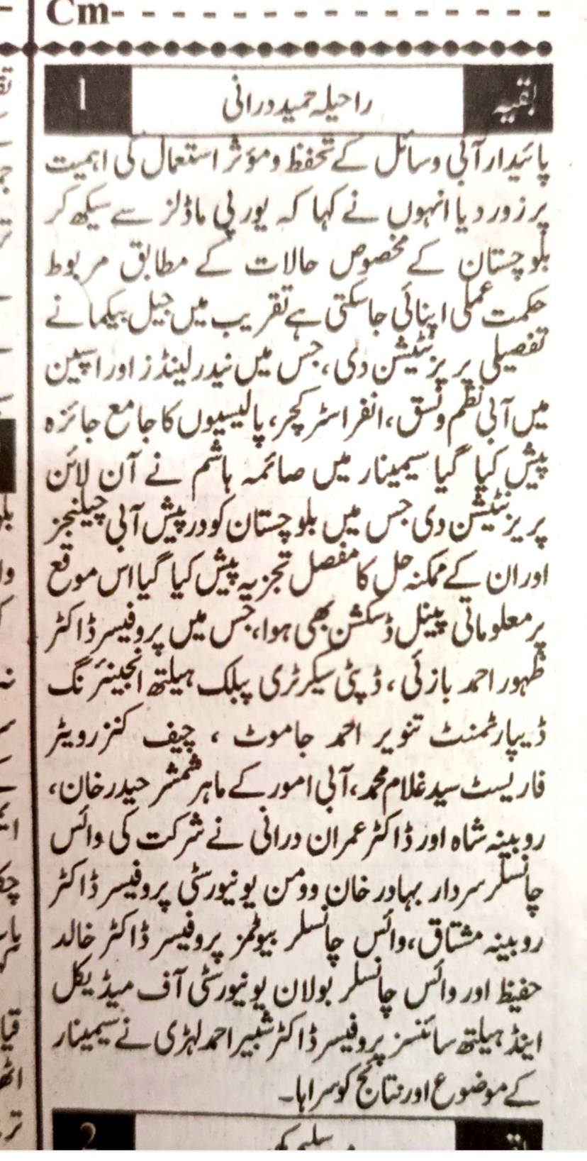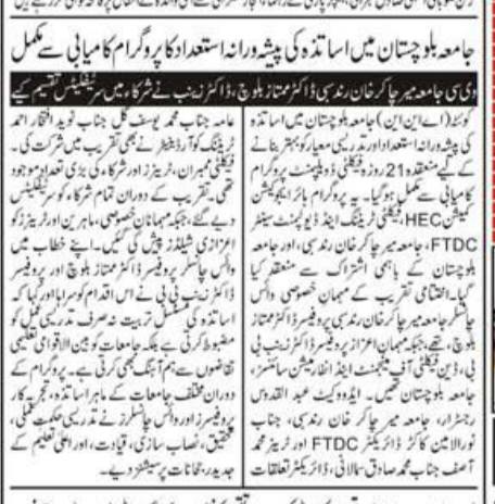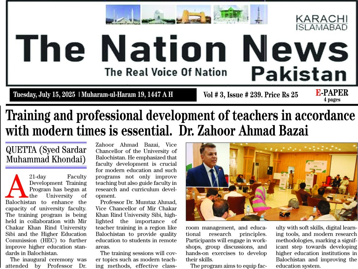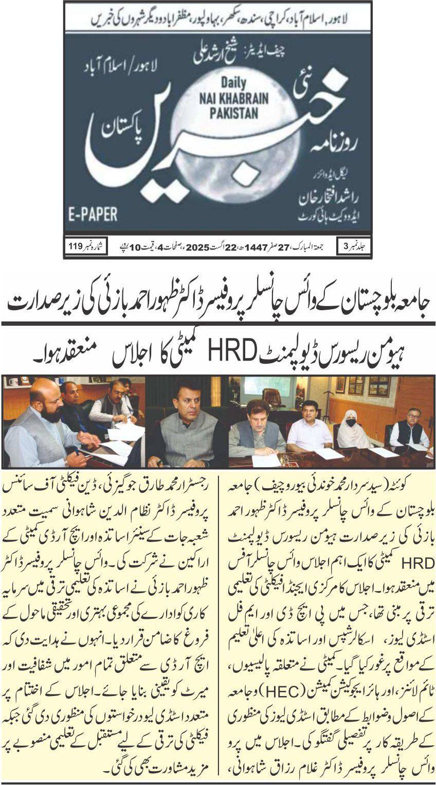 The University of Balochistan continues to receive prominent coverage in print media for its academic achievements, research initiatives, administrative reforms