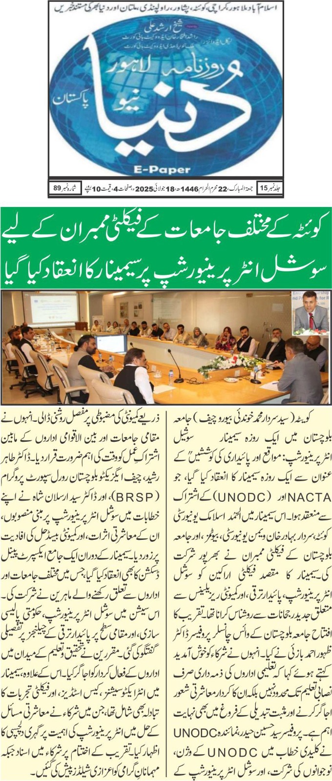DPR July 5, 2025 Directorate of Public Relations, University of Balochistan