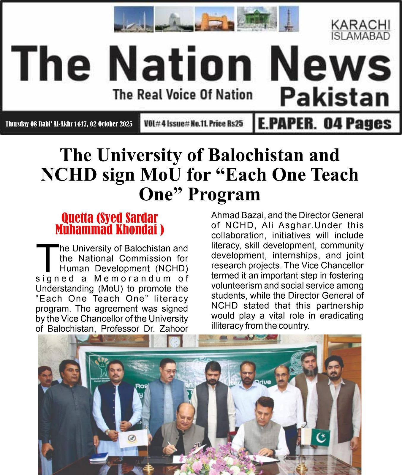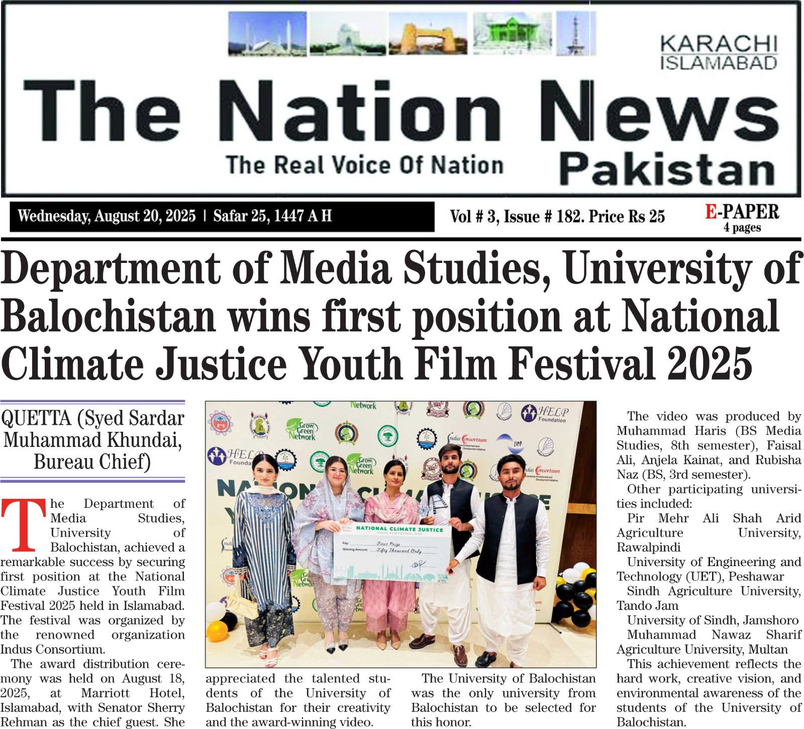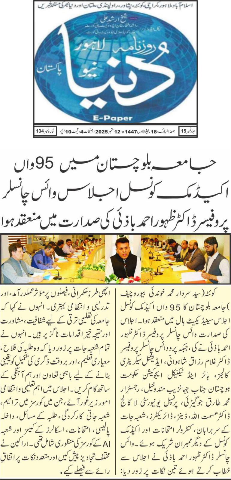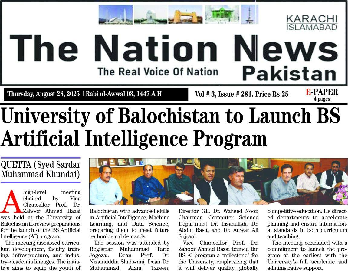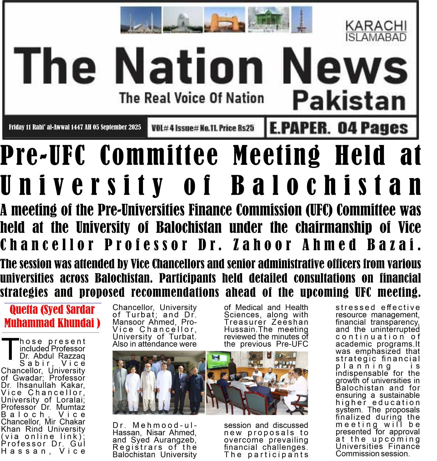 The University of Balochistan continues to gain prominent recognition across leading national and provincial newspapers through consistent and impactful media coverage of its academic, research, and co-curricular developments.