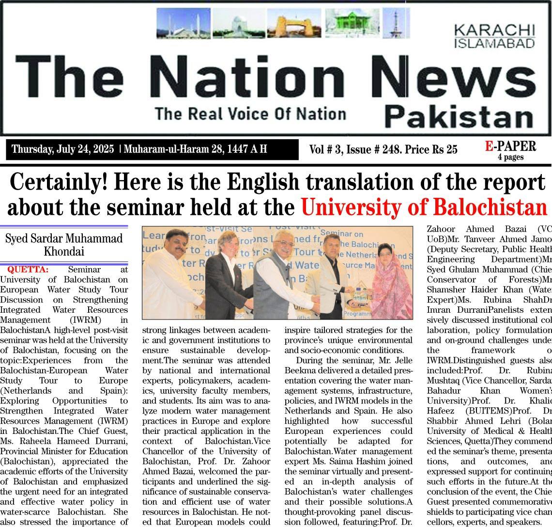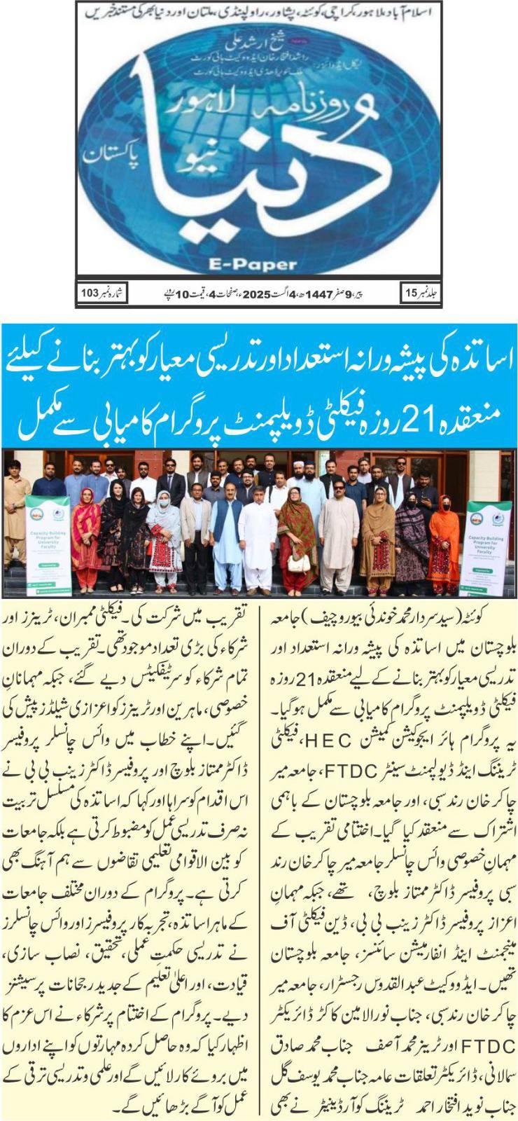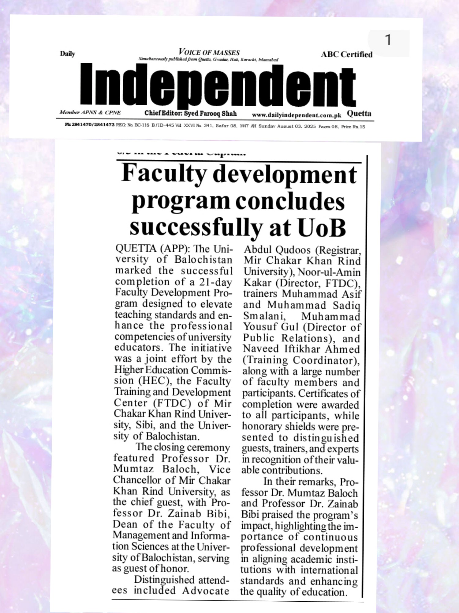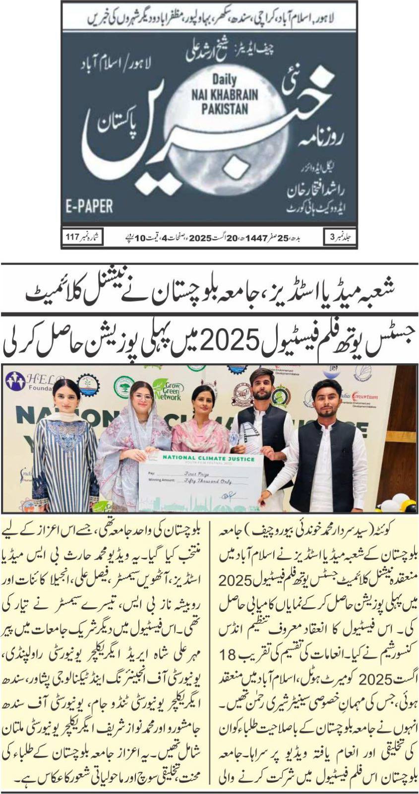 The University of Balochistan continues to gain prominent recognition across leading national and provincial newspapers through consistent and impactful media coverage of its academic, research, and co-curricular developments.