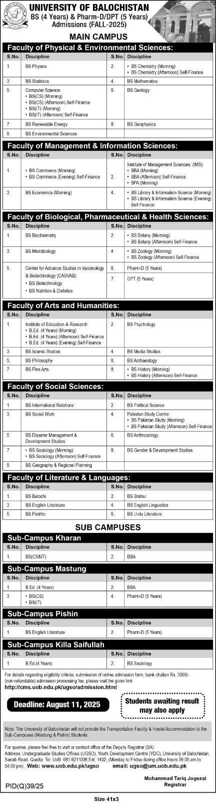 University of Balochistan. Department of Public Relations, University of Balochistan, September 18, 2025.