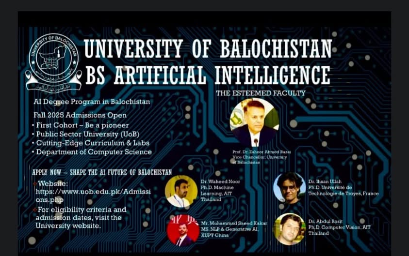 A meeting was held under the chairmanship of Vice Chancellor Prof. Dr. Zahoor Ahmed regarding the launch of BS AI Artificial Intelligence program at the University of Balochistan,