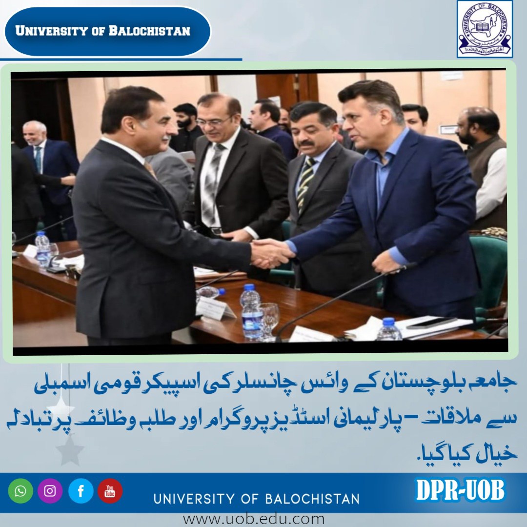 University of Balochistan Vice Chancellor Prof. Dr. Zahoor Ahmed Bazai met with Speaker National Assembly Sardar Ayaz Sadiq, during which they discussed important steps to