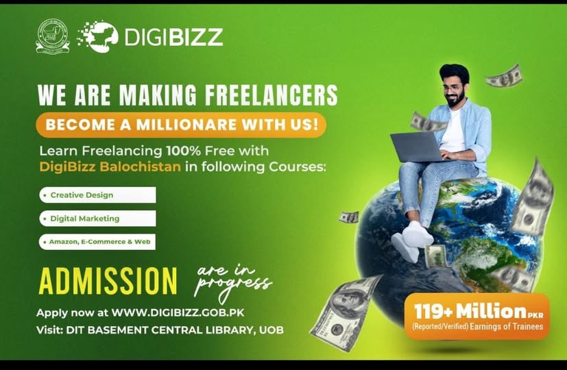 Admissions in DigiBizz Batch 8 at University of Balochistan ongoing offering monthly stipend, free training and modern courses , 26 June 2025