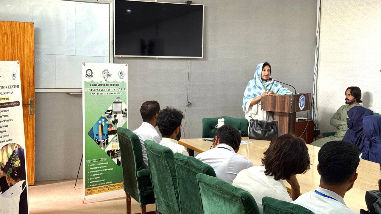 An awareness session was organized by the Business Incubation Center of the University of Balochistan for the students of BUITEMS Balochistan University of Information Technology, Engineering and Management Science. University DPR, June 23, 2025