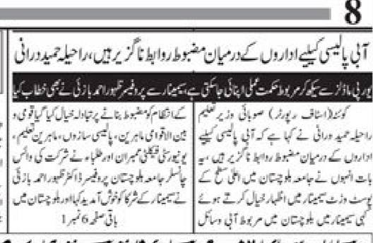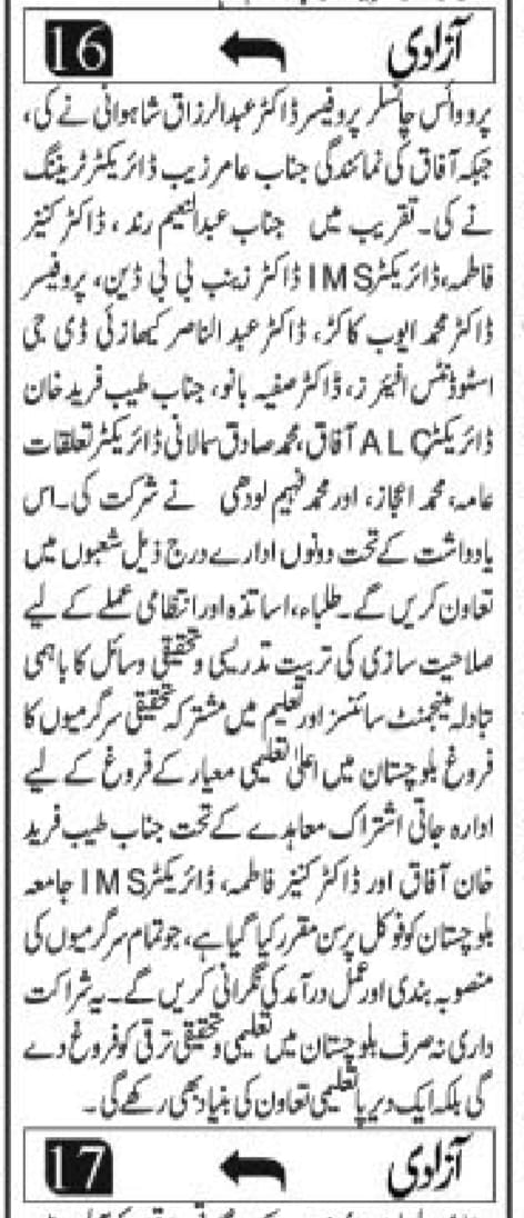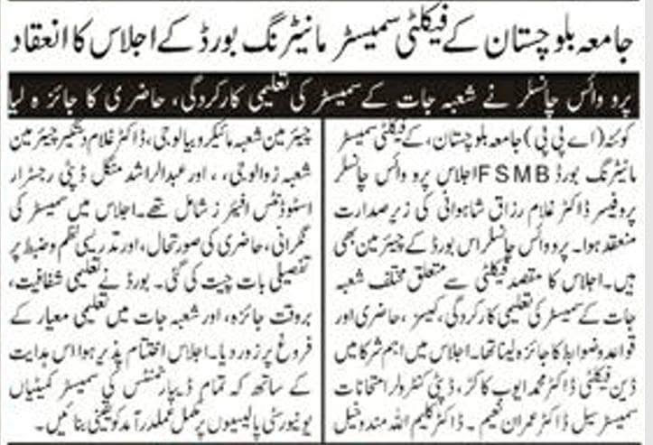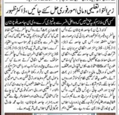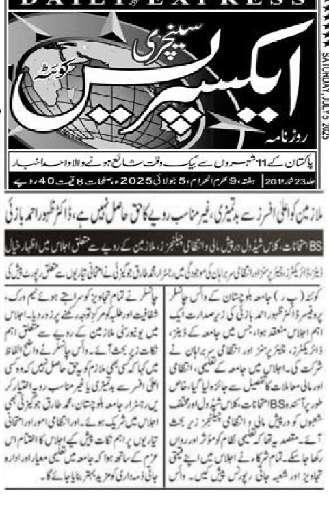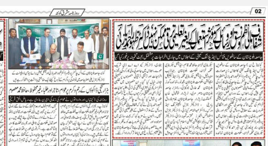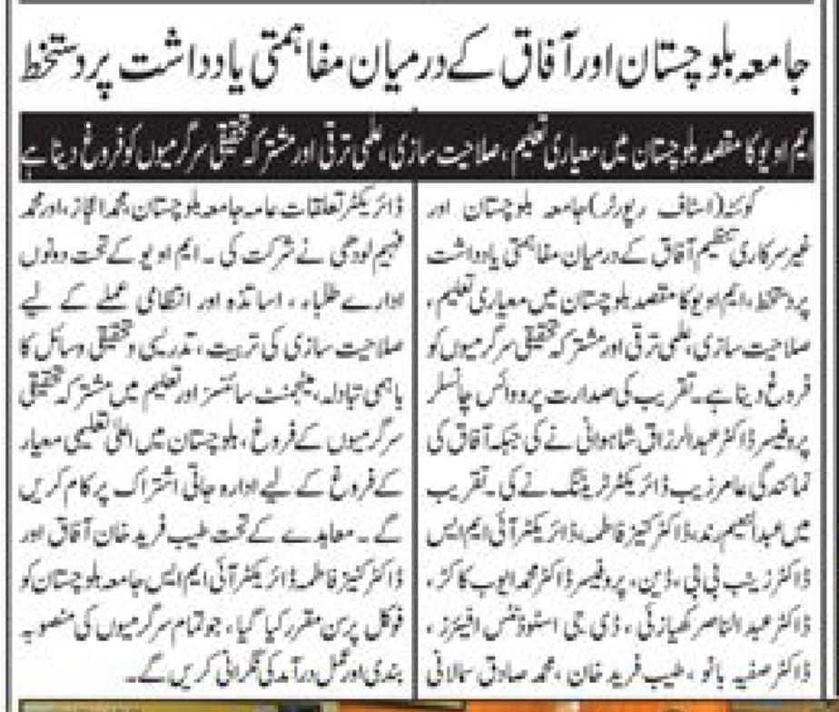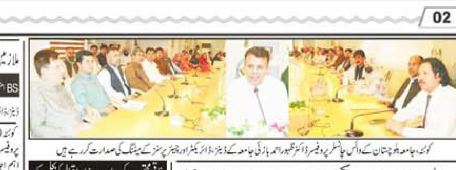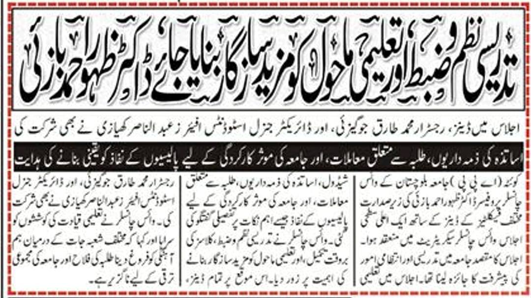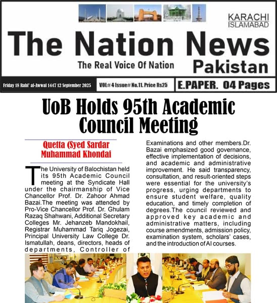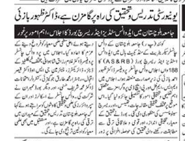 Print Media Coverage – University of Balochistan The University of Balochistan continues to receive prominent coverage in print media for its academic achievements, research initiatives, administrative reforms