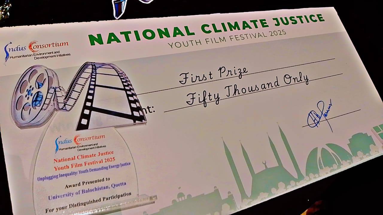 Department of Media Studies, University of Balochistan won first position in National Climate Justice Youth Film Festival 2025. DPR, University of Balochistan 19 August 2025