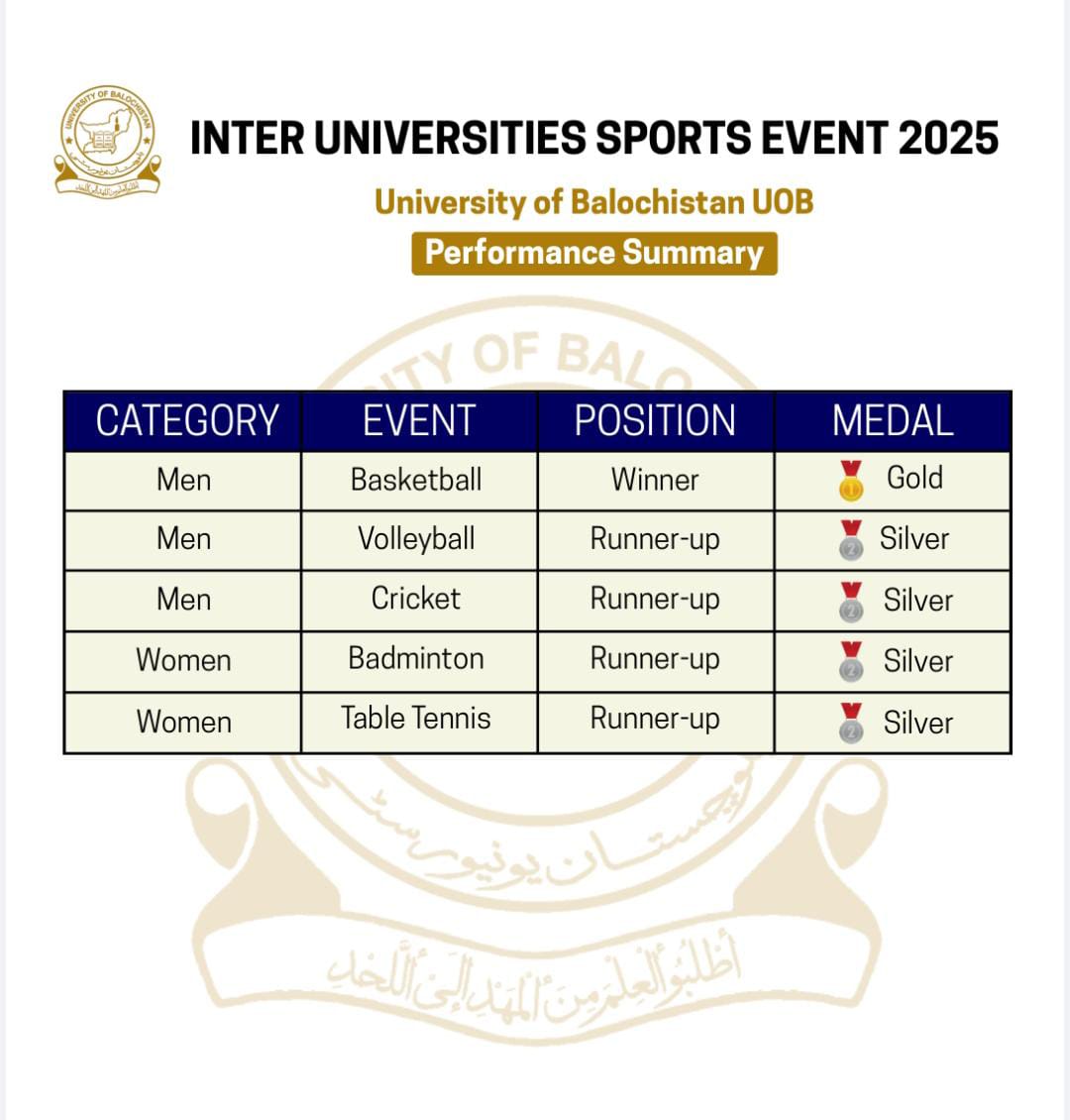 The Inter-University Anti-Corruption Day Sports Festival competitions organized by the Balochistan Sports Department. University of Balochistan wins the final of the Inter-University Basketball Tournament Department of Public Relations, University of Balochistan October 4, 2025