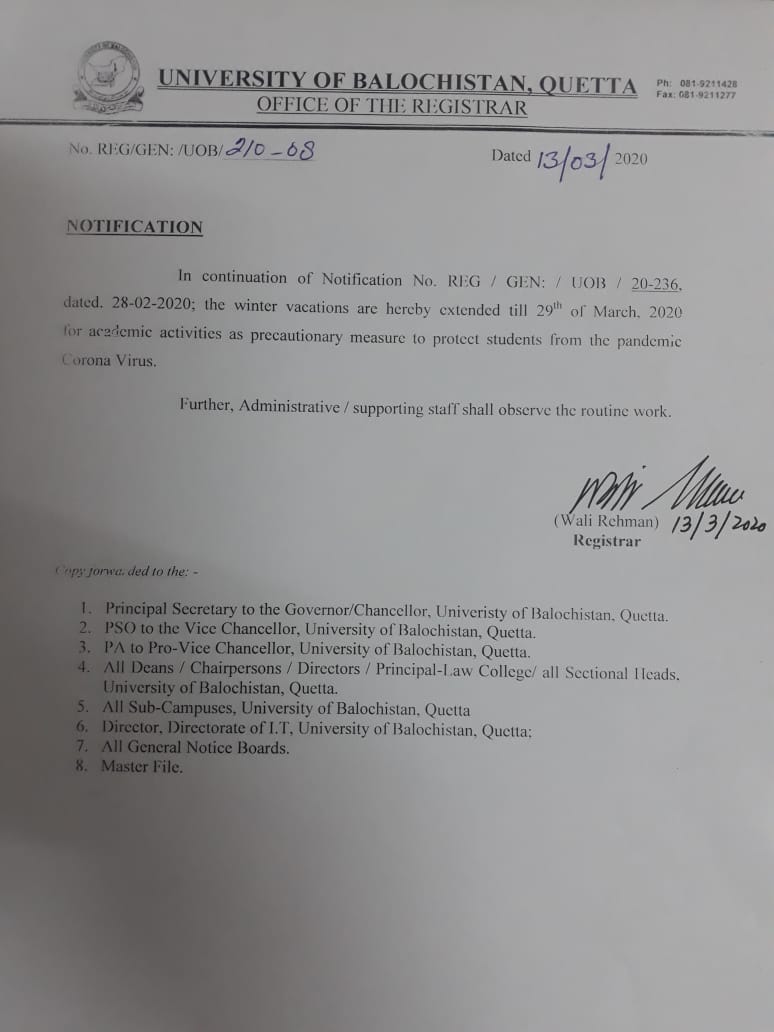 the Syndicate Hall, Vice Chancellor Secretariat), University of Balochistan,