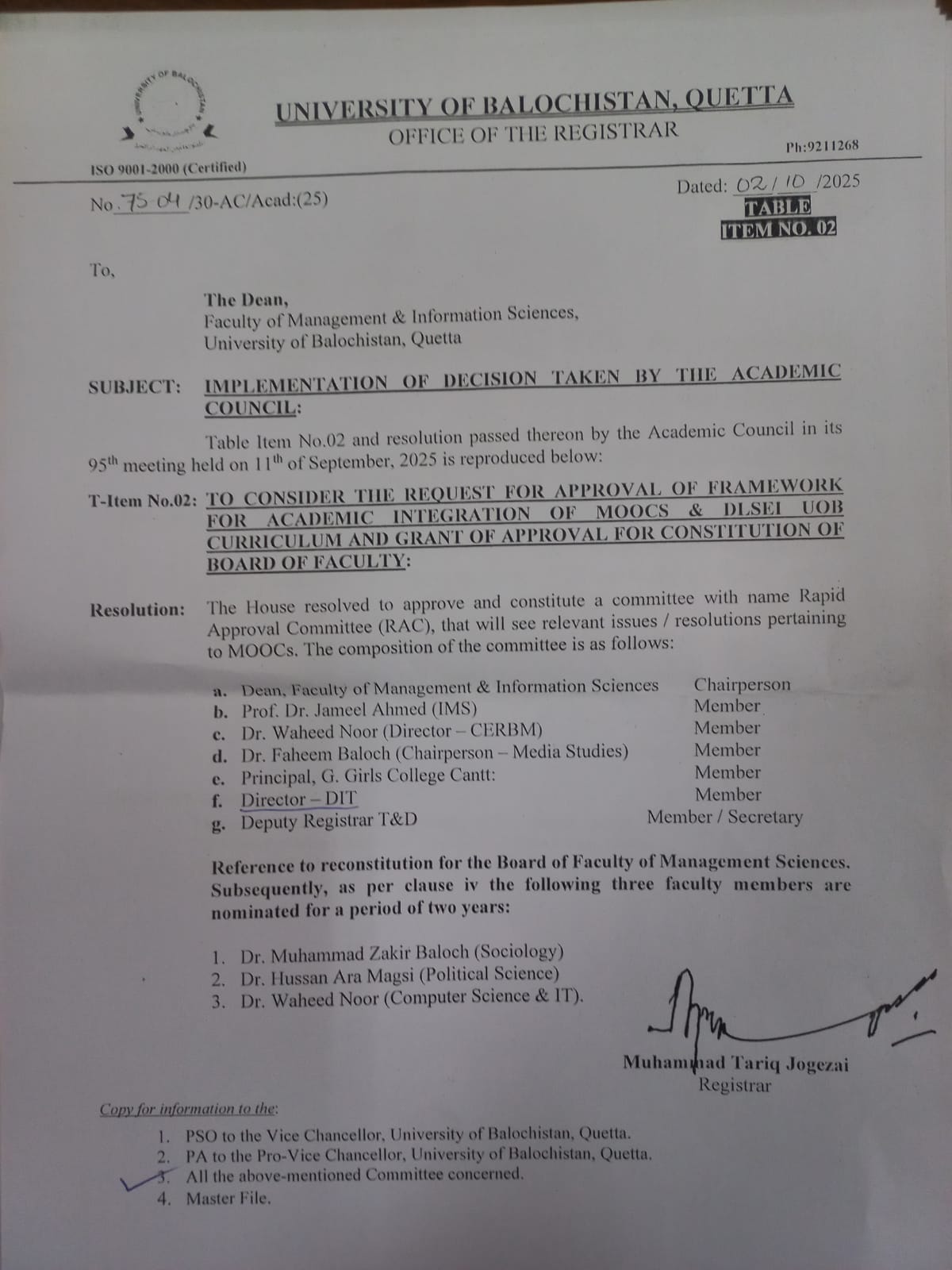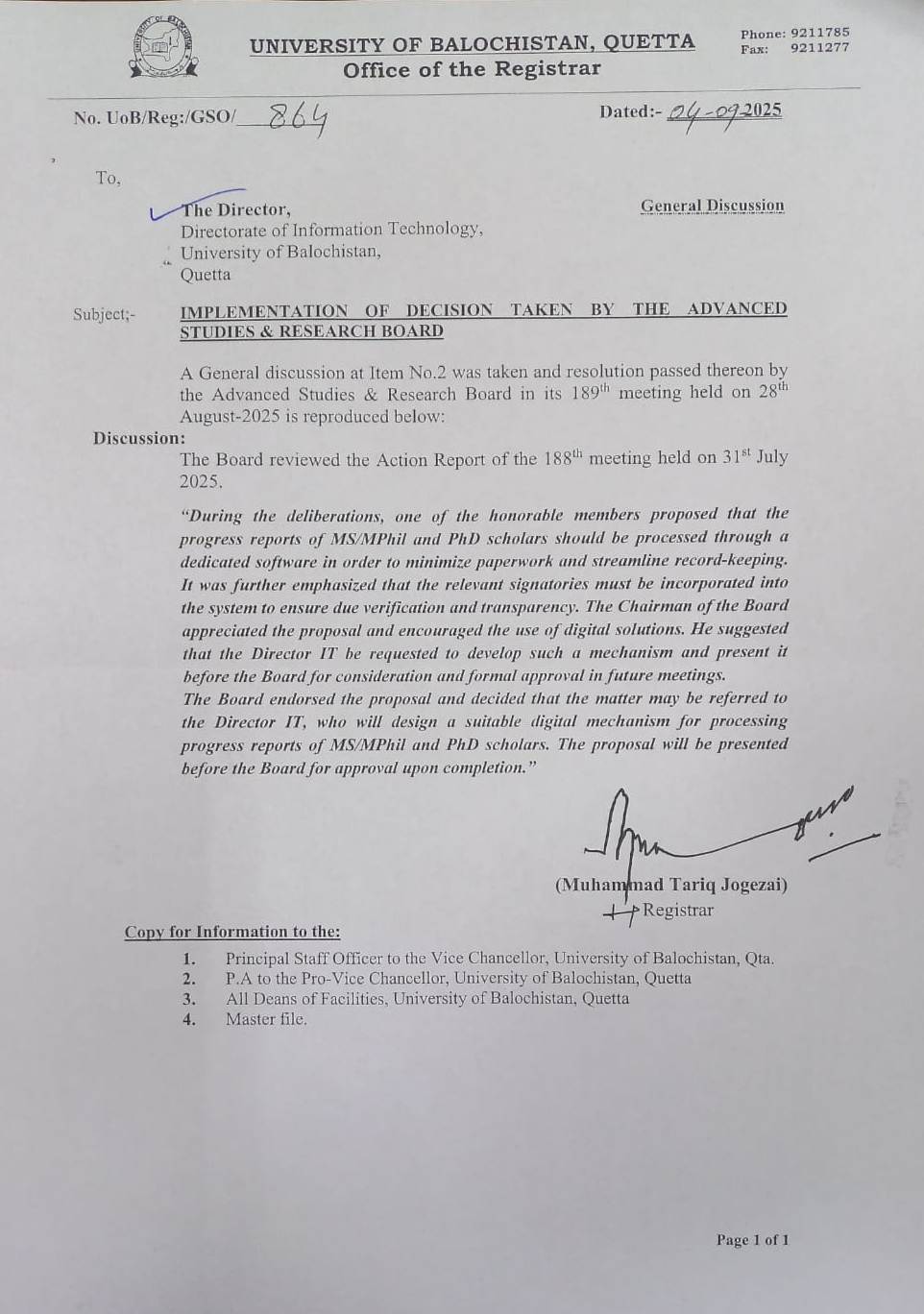 Establishment of University of Balochistan's Authorized Social Media Platforms