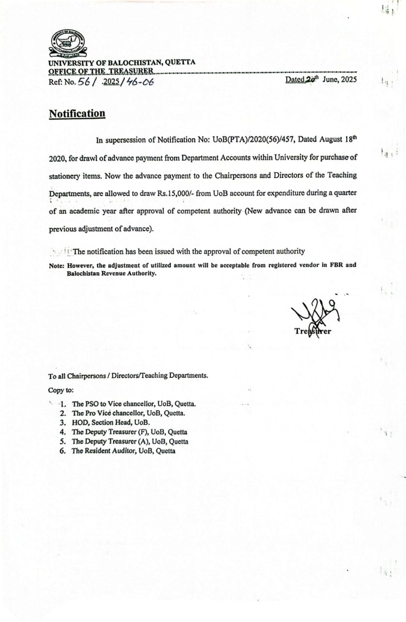 Directors of the Teaching Departments, are allowed to draw Rs.15,000/- from UoB